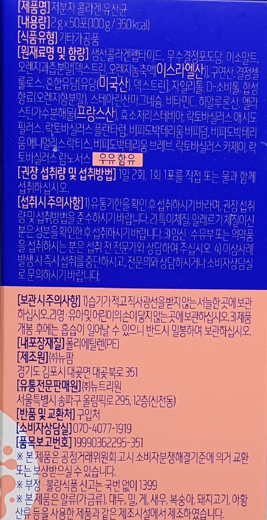 뉴트리원 저분자 콜라겐 유산균 (2G*50포) 2개